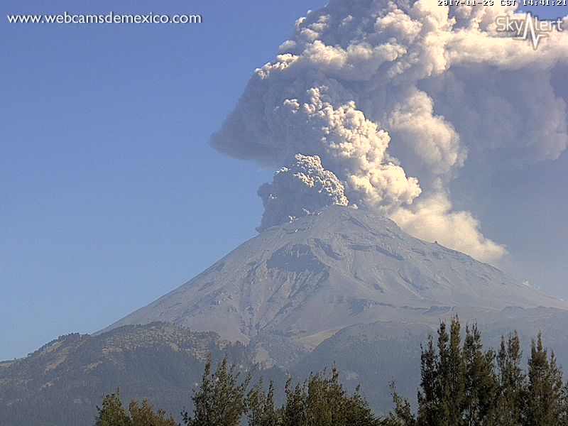 The Popocatépetl volcano had his strongest eruption since 2013 on Thanksgiving 2017, sending a plume of ash and gas 1,800 meters above the summit. The explosion was so strong, it was registered from the Tlamacas and Altzomoni stations located 4.5 kilometers and 12 kilometers away from the volcano, respectively. The first video is from WebCam de Mexico: