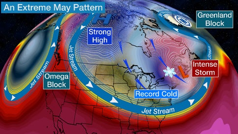 An extreme weather pattern is setting up for Mother’s Day weekend that will shatter dozens of temperature records, wring out strange May snow in the interior Northeast and possibly set May pressure records both in parts of New England and northern Canada.